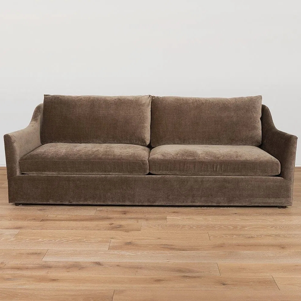 Ce canapé en velours chocolat est une réinterprétation classique, alliant avec élégance la douceur du velours à un design simple et raffiné. Son velours haut de gamme (dense, au doux éclat et au toucher exceptionnel) respire le luxe discret : chaque rayon de lumière illumine sa teinte chocolat profond et chaleureuse, en faisant un point focal subtil dans votre salon. Ce canapé se distingue par ses lignes épurées et fluides (dossier droit, coussins fermes et moelleux, et pieds fins en métal noir), alliant modernité et sophistication. Il s'harmonise parfaitement avec les styles de décoration contemporains ainsi qu'avec les meubles vintage, créant un style éclectique haut de gamme.