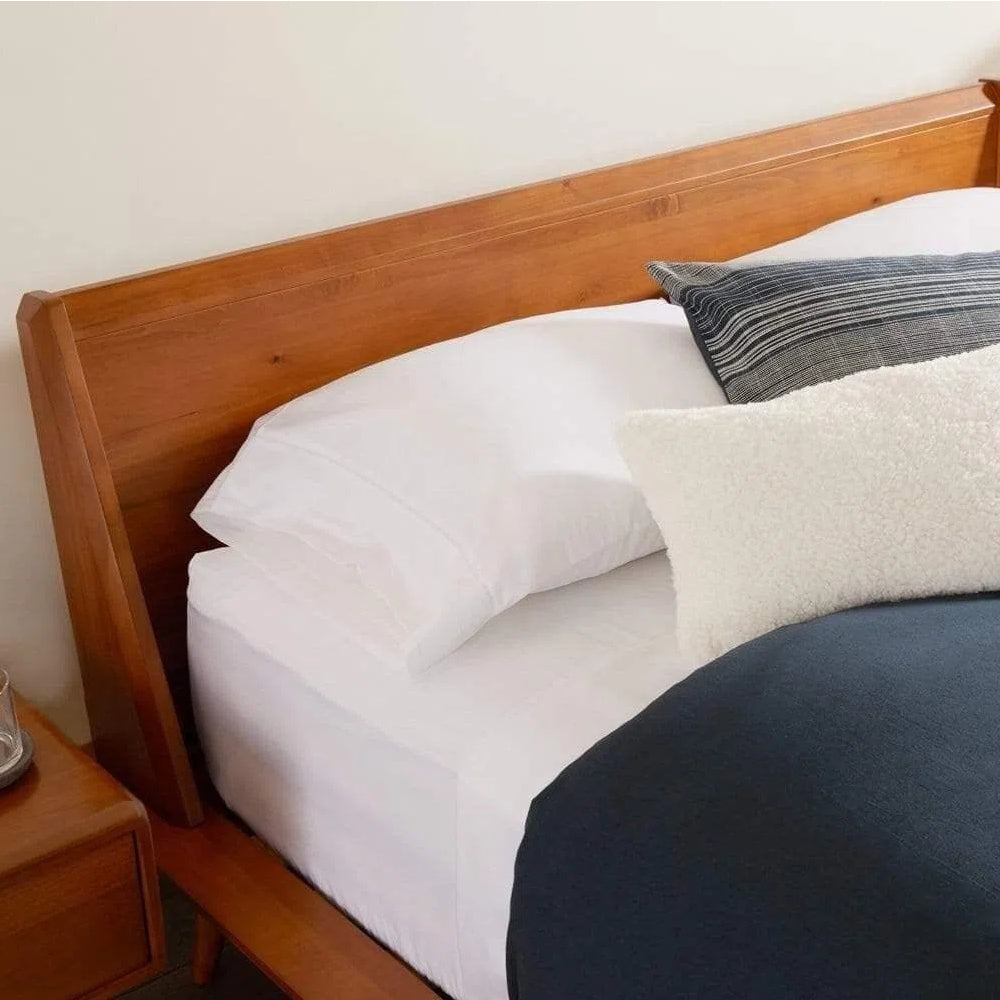 Ce lit est fabriqué en bois massif de première qualité (chêne ou noyer), garantissant une stabilité maximale (aucun bruit, aucune déformation), malgré son apparence apparemment « légère ». Le grain naturel du bois offre un toucher doux et développera progressivement une patine unique, révélant le charme singulier de votre espace.